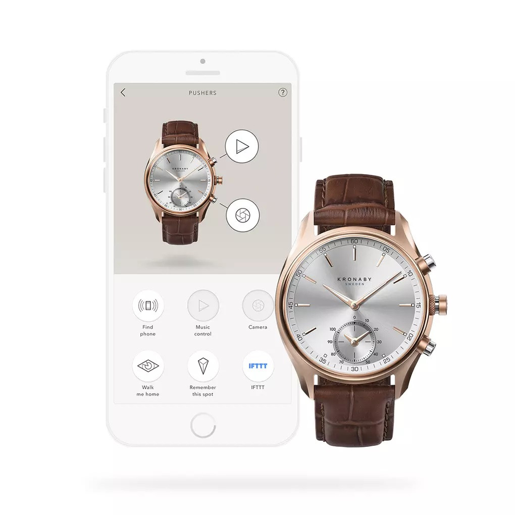 Egyetlen gombnyomással irányíthatja a folyamatokat: indítsa el a zenelejátszást, készítsen fotót, utasítsa el a hívásokat, változtassa a lámpa világítását, nyissa ki a garázsajtót… A Kronaby felhasználásának csak a fantázia szab határt! Dupla kupolás zafírüveggel védett analóg kijelzőjén pedig minden fontos információ megjeleníthető. A rozsdamentes acél tok átmérője 43 mm.